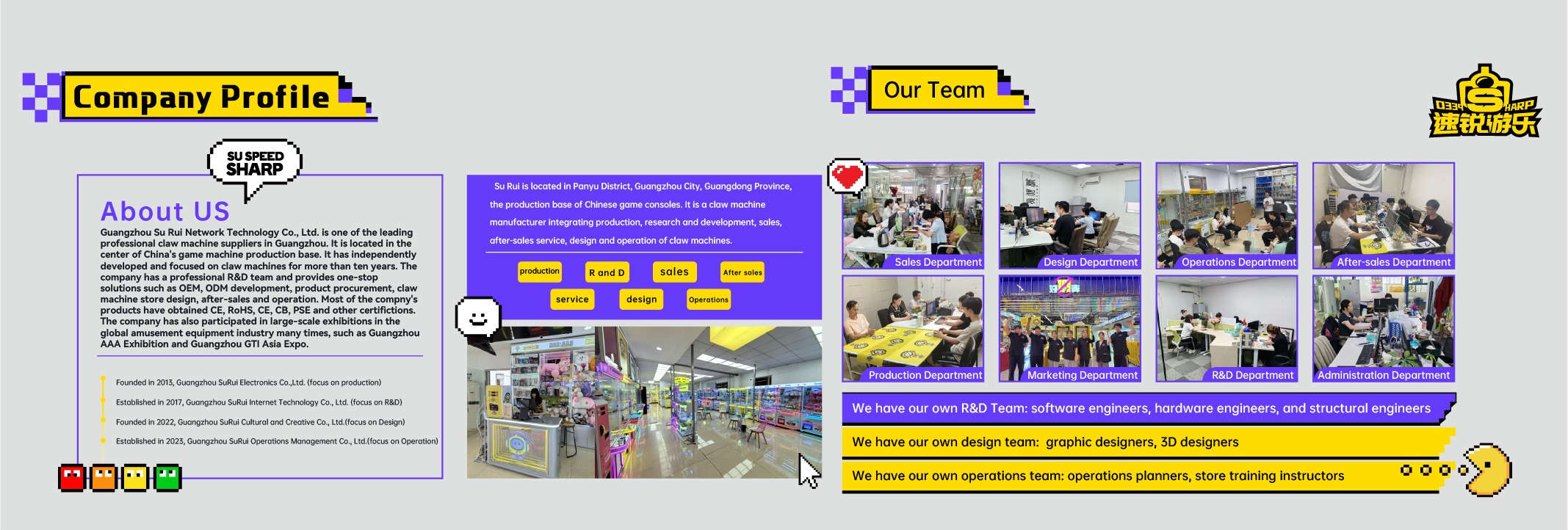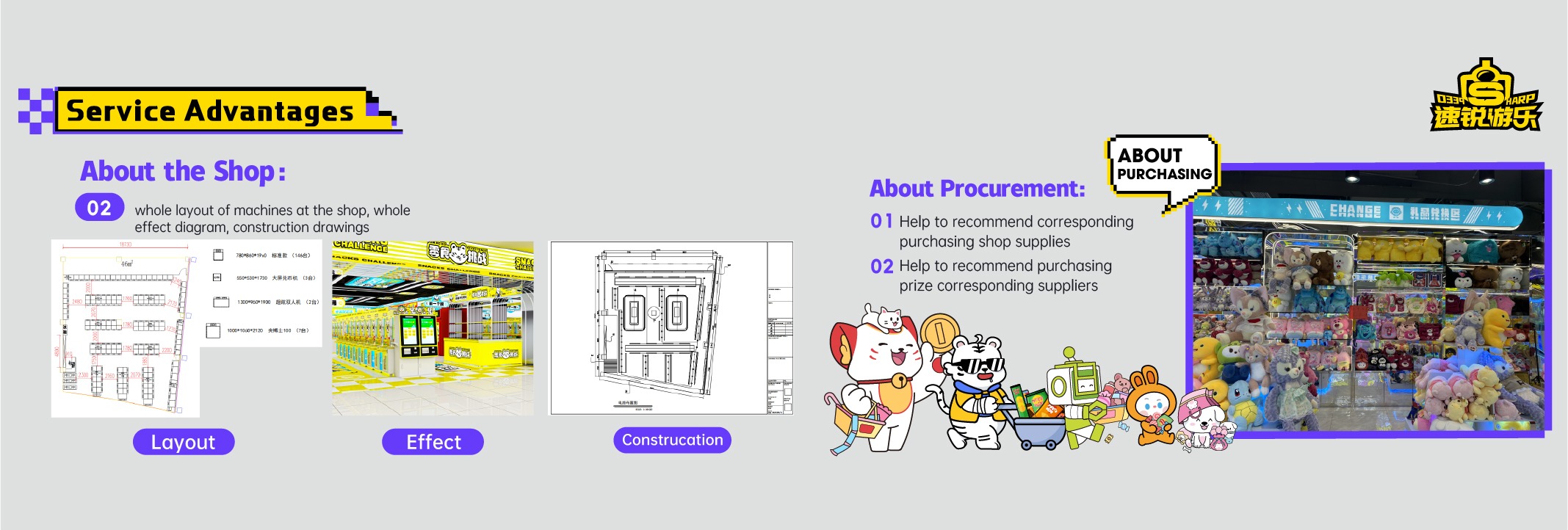 Productos principales:Máquina de garra, juego que funciona con monedas, máquina gachapon, máquina de muñecas, máquina de premios